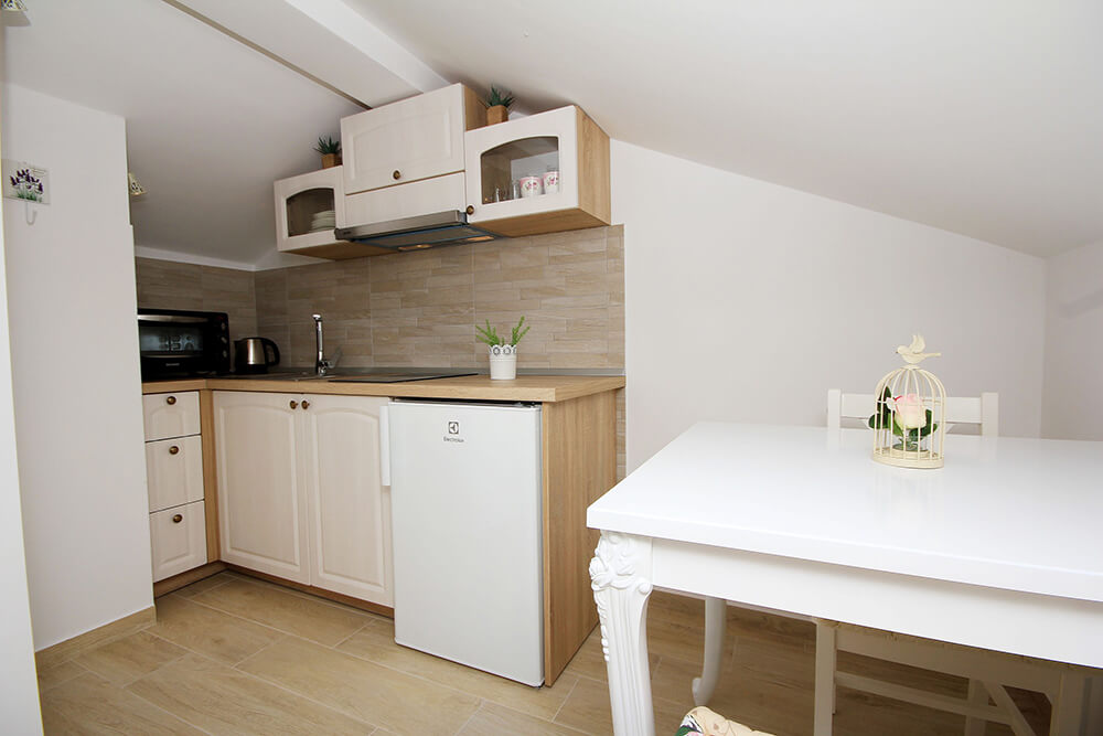 Svaka kuhinja je u potpunosti opremljena posuđem kao i priborom za jelo. U slučaju da nešto nedostaje, slobodni ste obratiti nam se.